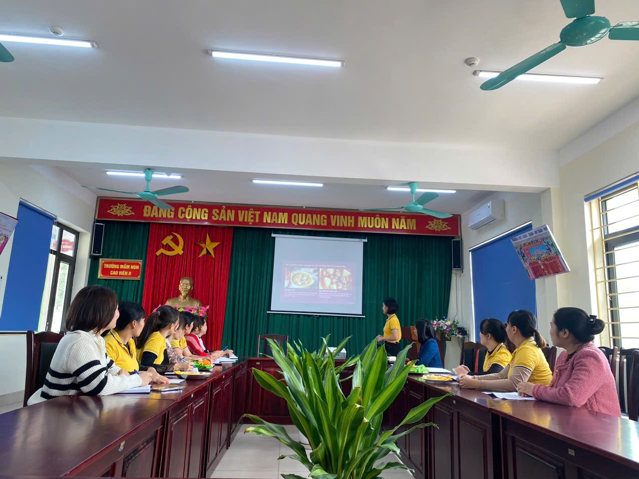 Chiều ngày 20/3/2025 Nhà trường tổ chức tập huấn bồi dưỡng cho nhân viên nuôi dưỡng về kiến thức làm Bánh Bông Lan, nấu súp, Nấu nước sốt Bolognaisescho trẻ ở trường mầm non.