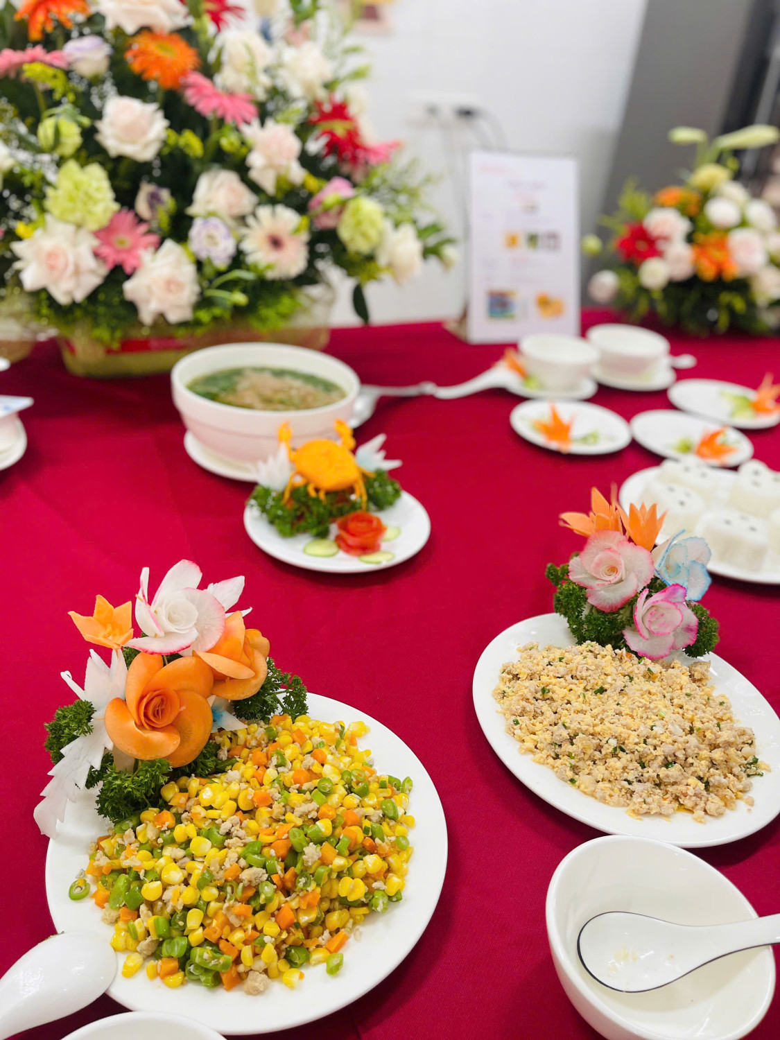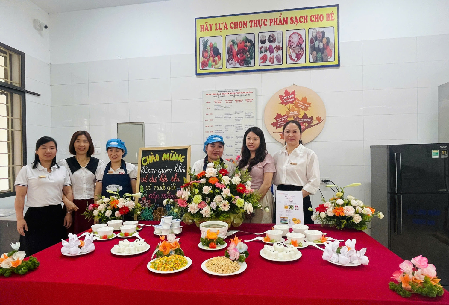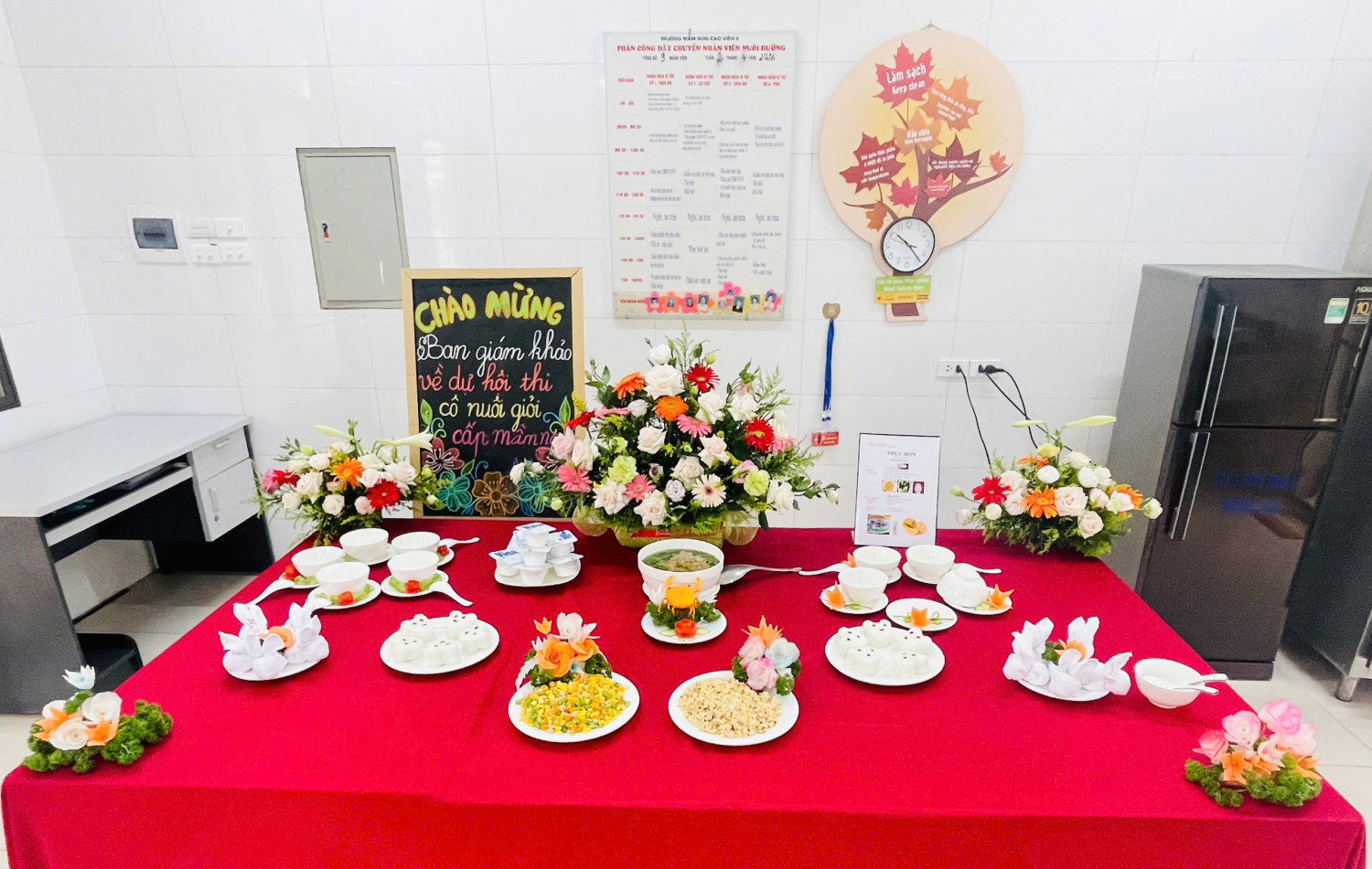 Đồng chí nhân viên nuôi dưỡng tham gia nội dung thi về kiến thức chuyên môn, kỹ năng chế biến và xây dựng thực đơn bảo đảm dinh dưỡng, an toàn thực phẩm cho trẻ mầm non. Tại cuộc thi đồng chí đã thể hiện kiến thức, kỹ năng và tâm huyết qua các món ăn dành cho trẻ. Giúp các con ăn ngon miệng hơn và phát triển toàn diện về thể chất và trí tuệ.![]()
